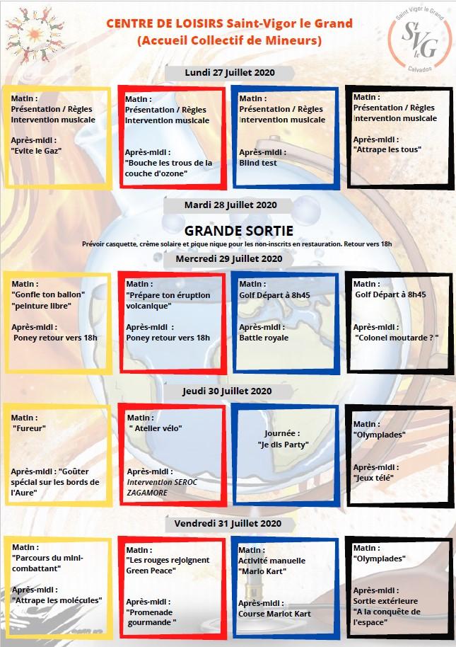 2020 Planning semaine 31