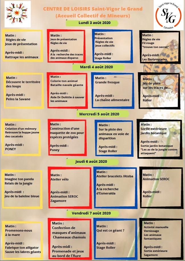2020 Planning semaine 32