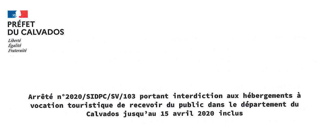 Arrêté portant interdiction aux hébergements à vocation touristique de recevoir du public dans le département